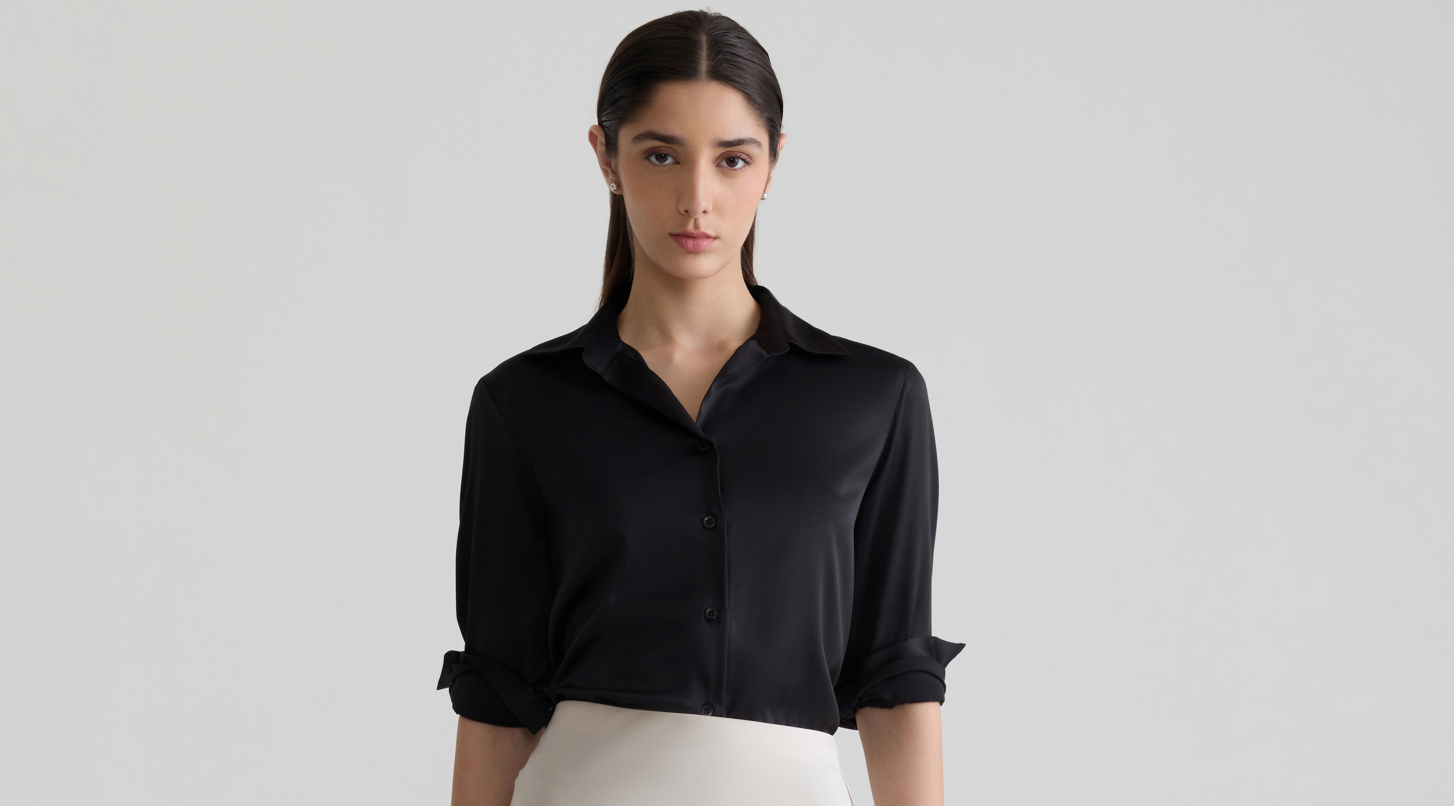 BLACK - WOMEN BUSINESS SATIN SHIRTS