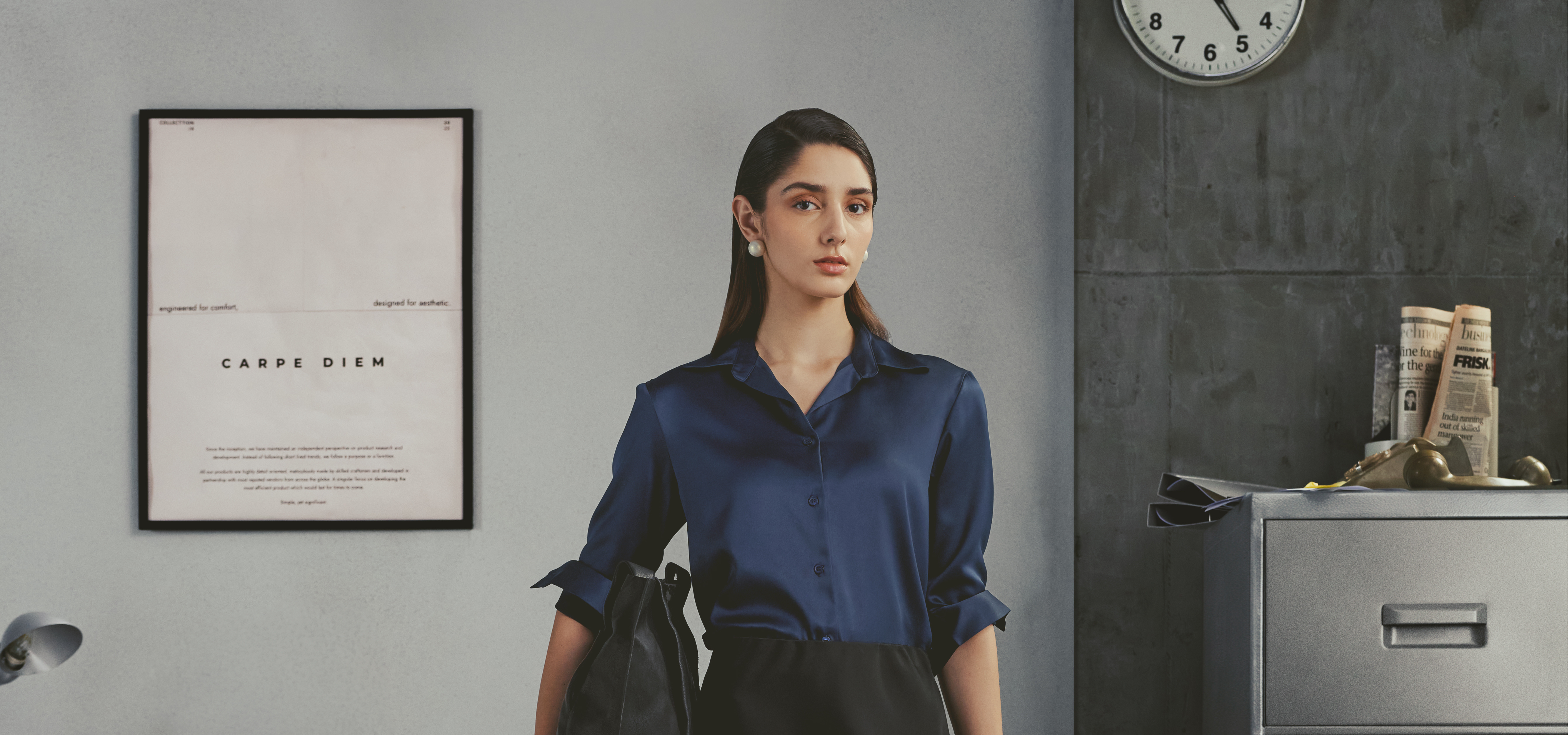 DEEP BLUE - WOMEN BUSINESS SATIN SHIRTS