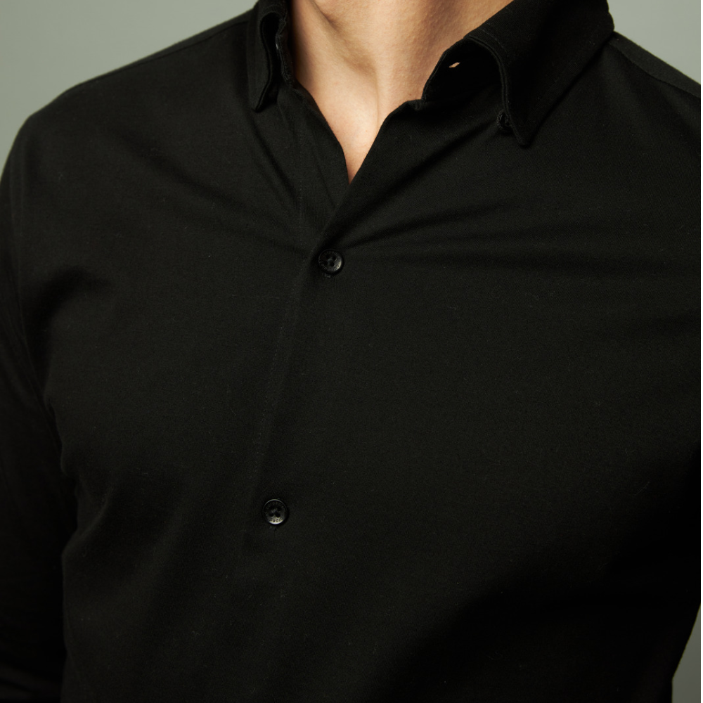 Jet Black Hybrid Button-Down Knit Shirt
