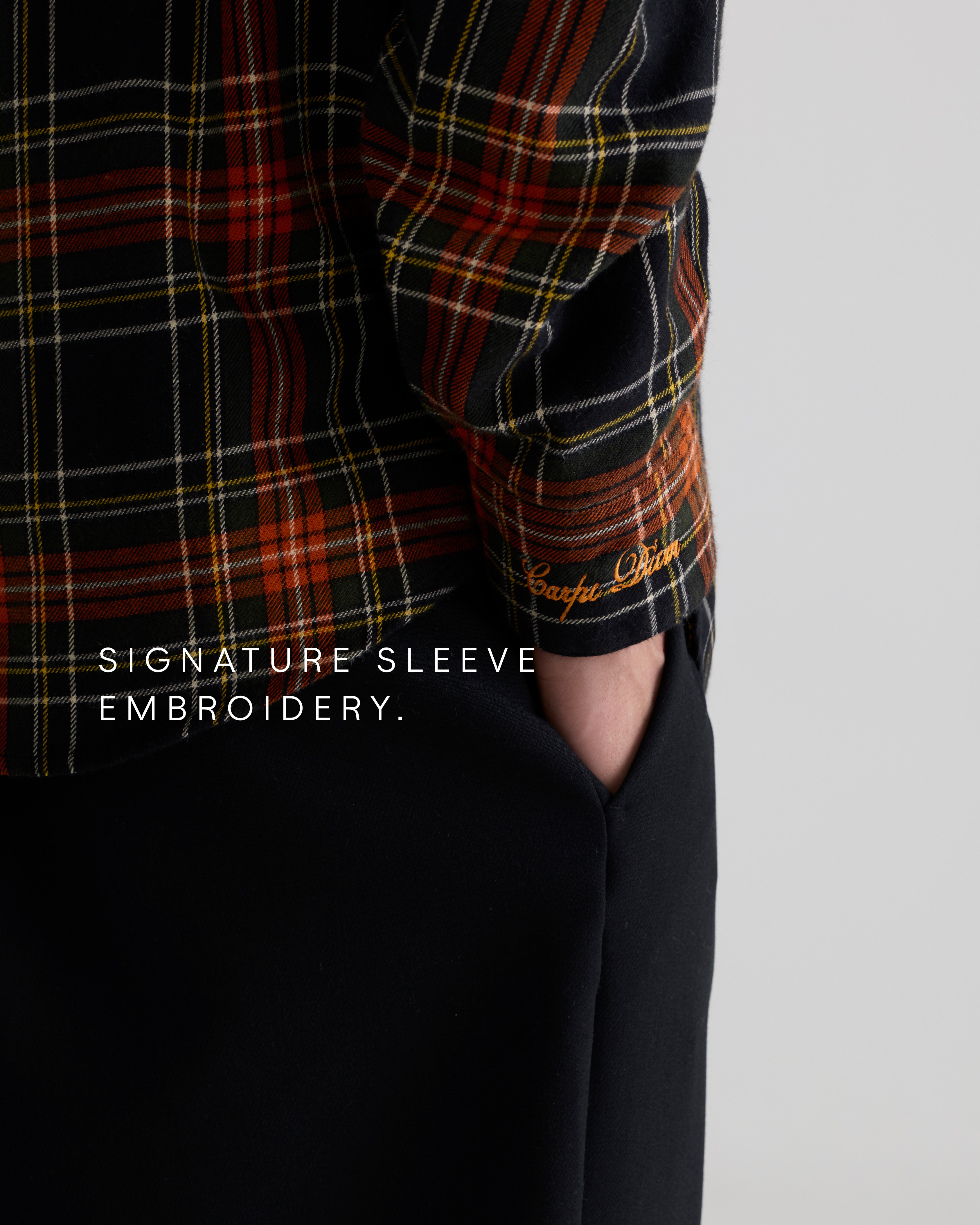 A mid-weight checked flannel designed for everyday structure. Cut in a regular fit for a clean silhouette, with enough room to size up and wear as a light jacket. Finished with Carpe Diem’s signature sleeve embroidery.